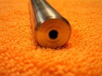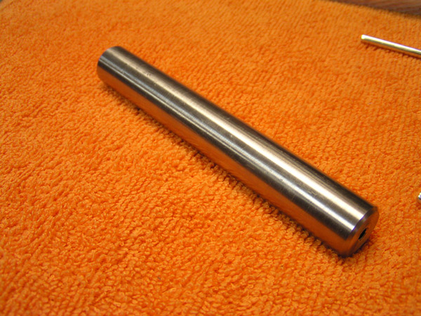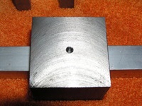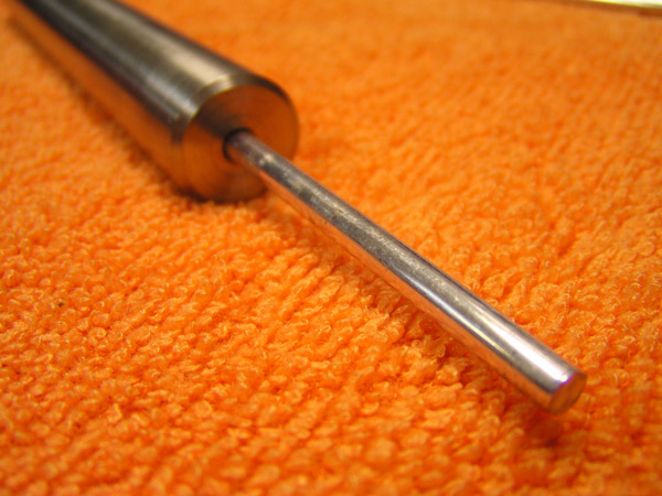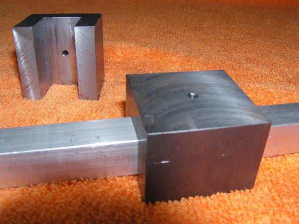 Die Element Einschlaghilfe besteht aus Rundmaterial mit 4mm Bohrung. Das entsprechende Element wird auf einer Seite etwas bearbeitet indem die Kante mit einer Schlichtfeile leicht " gebrochen " wird. Dann wird das Element in die Einschlaghilfe gesteckt und mit einem Hammer, bis zum entsprechendem Maß, durch die 3,9mm Bohrung im Boom getrieben.