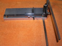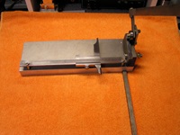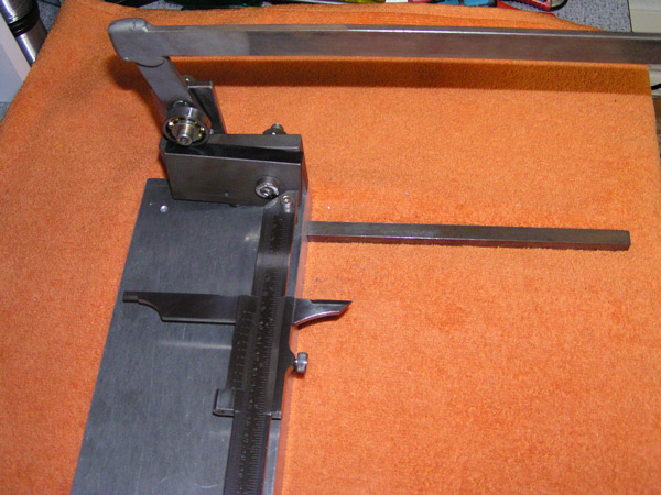 Für eine 23cm Langyagi ist die Herstellung der entsprechenden Elemente sehr mühsam, da exakte Abmessungen der entsprechenden Elemente erforderlich sind. Eine große Hilfe dabei ist ein Hilfswerkzeug wie unten zu sehen. Die Elemente der Yagi bestehen aus 4mm AlSiMg 1,5 Rundmaterial, welches in 1mtr. Längen gehandelt wird. Mit einer Säge kann man nicht exakt arbeiten, zusätzlich müssen die abgesägten Längen noch mit einer Feile auf exakte Länge gebracht werden.