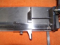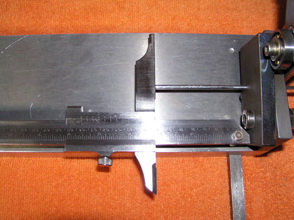 Bei diesem Hilfswerkzeug wird einfach der Alu-Stab in die Bohrung bis zur eingestellten gewünschten Länge durchgesteckt. Der Messschieber ist mit der entsprechenden Feststellschraube fixiert.