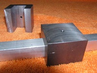 Die beiden Werkzeugstahl - Schneidebacken schneiden den Alu-Stab durch wie " Butter " wobei zusätzlich keinerlei Grad entsteht oder nacharbeiten notwendig sind.