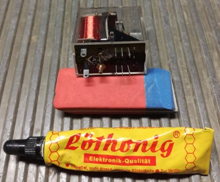 Vor dem Einbau der lange gelagerten Relais sollte man, um sich nach dem Einbau der Relais, das anlöten der Drähte zu vereinfachen, die Relaisanschlüsse von der vorhandenen Oxydschicht so gut es geht befreien.