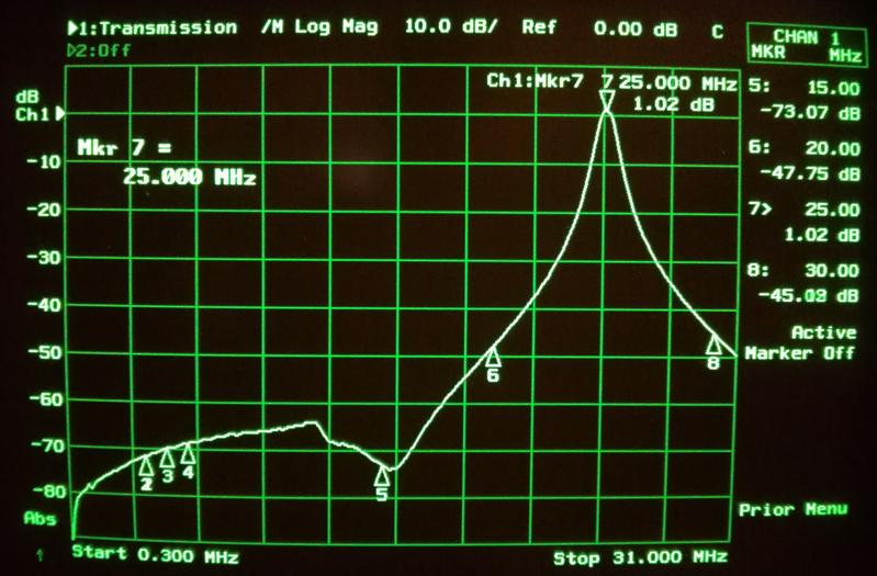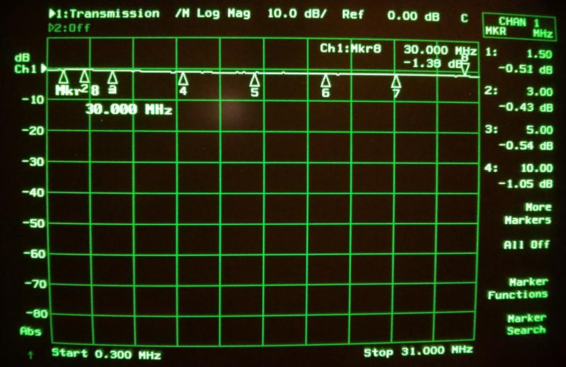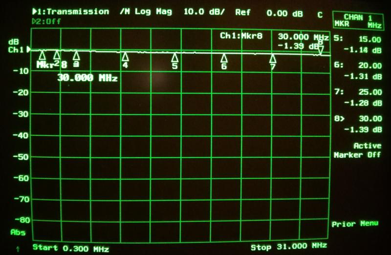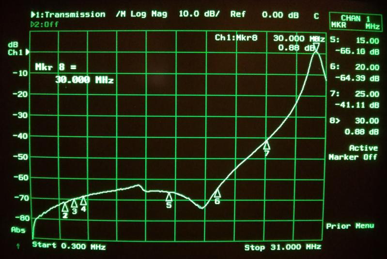 Anzumerken ist, dass bedingt durch den Verstärker im oberen Frequenzbereich die Grunddämpfung im Durchlassbereich sogar ausgeglichen wird.