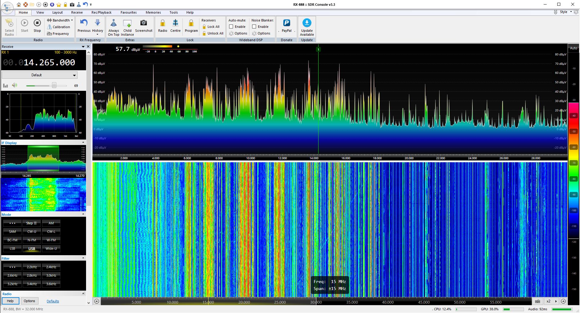 Ich hatte vor einigen Jahren, einen direkt abtastenden 16 Bit SDR erworben,, welcher mit 64 Mbps Abtastrate Signale im Bereich von 1 khz bis 32 MHz in Echtzeit überträgt.