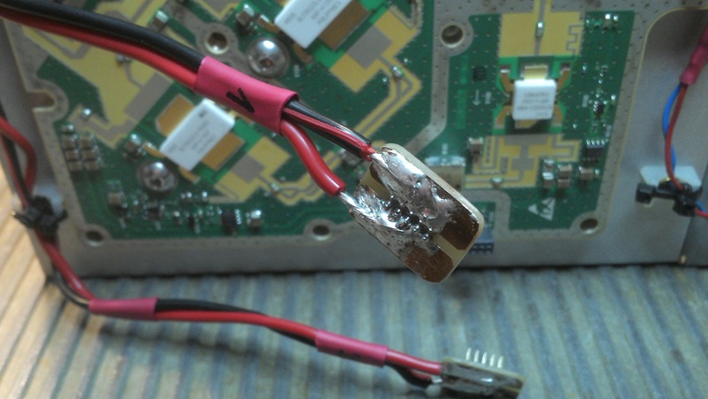 Jeweils vier Pin's sind parallel geschaltet für die Versorgung der beiden Endstufen Transistoren. Am Pin 1 ( linke Leiste ) wird die Versorgungsspannung für den +5Volt Wandler des Vortreiber angeschlossen, am Pin 1 ( rechte Leiste ) die Spannung für den Treiber Transistor.
